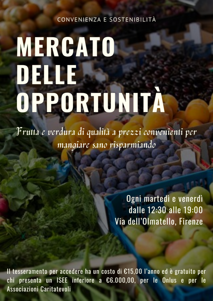 Il Mercato delle Opportunità è aperto tutti i martedì e venerdì, dalle 12:30 alle 19:00, con accesso in Via dell’Olmatello.